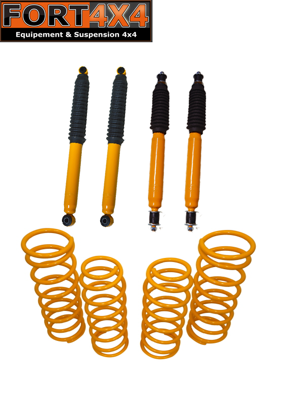 DJEBELXTREME - Kit suspension réhausse +40mm Nissan Patrol Y60 Court composé de - 4 ressorts médium - 4 amortisseurs Performance (Toutes utilisations, toutes destinations) |