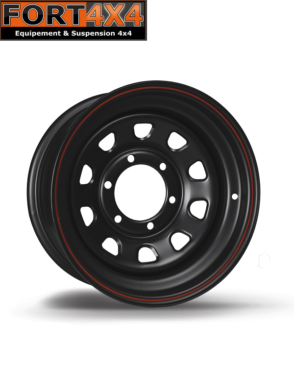 Jante en acier Daytona 10X15 en noir mat avec bande rouge destinée... + d'infos