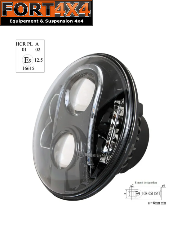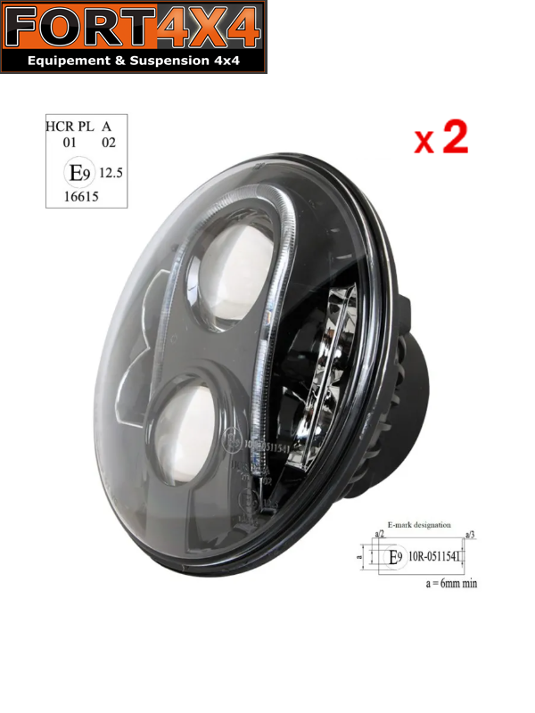 PHARE A LED NOIR 7 POUCES HOMOLOGUE ECE R10 R112 - PACK DE 2