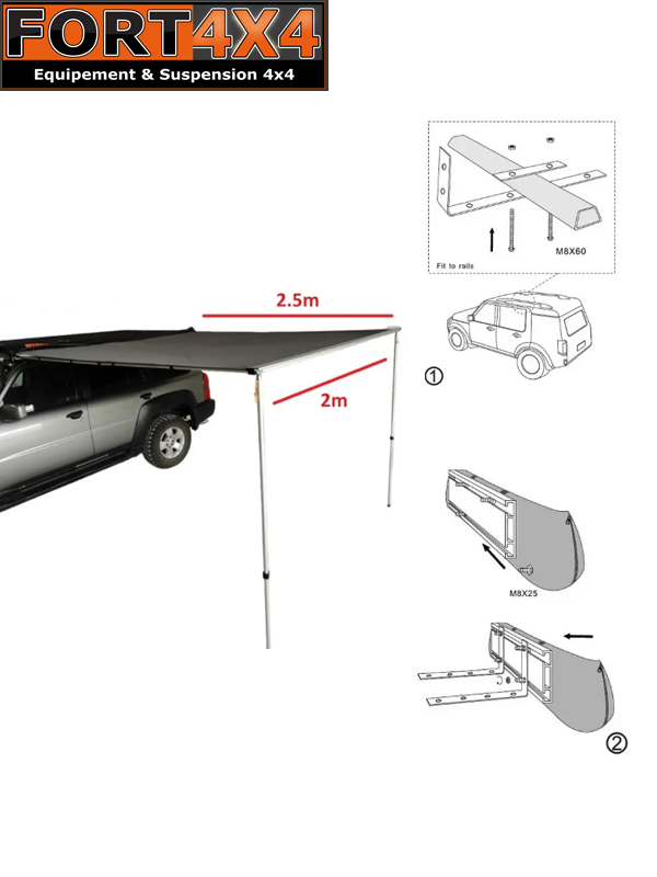 FORTLINE4X4 - AUVENT LATERAL 2 X 2.5 M - COULEUR GRIS