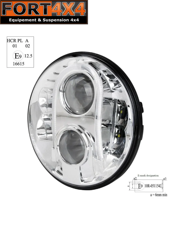 PHARE A LED CHROME 7 POUCES HOMOLOGUE ECE R10 R112 R7