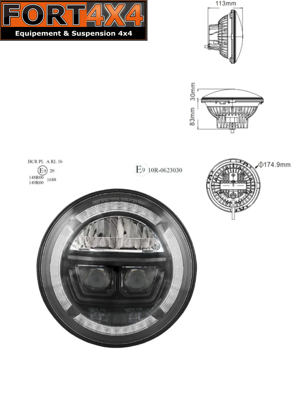 PHARE A LED 7 POUCES HOMOLOGUE ECE R10 R148 R149 AVEC CLIGNOTANT